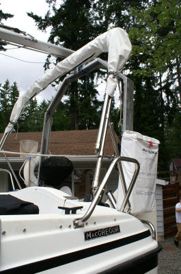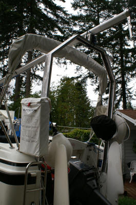 The arch now also mounts the VHF antenna, the GPS antenna and