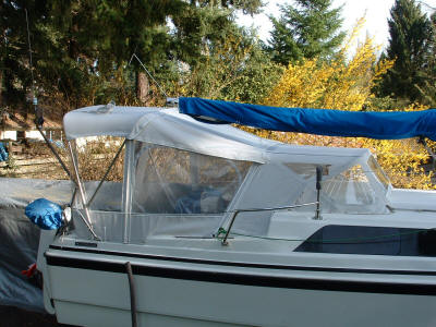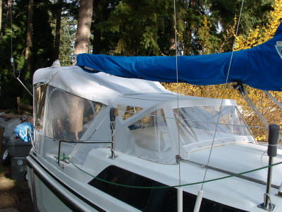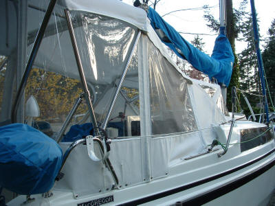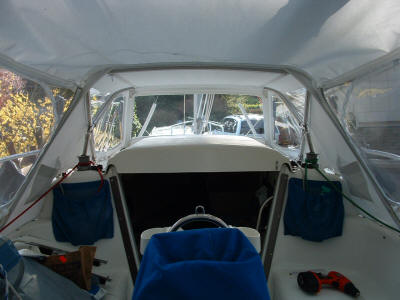 around the dodger/connector/bimini unit to enclose the cockpit.